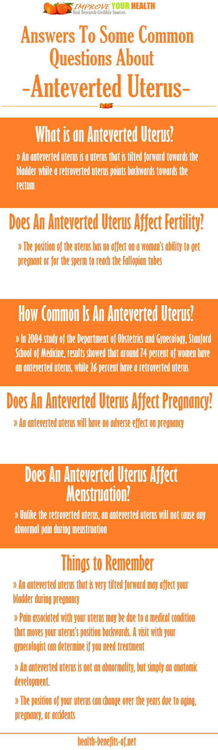 While it is important to understand the anatomy of your own body and it doesn’t hurt to discover which type of uterus you have, the uterus in an anteverted position is the most common position of the uterus and will have little to no effect on your life or on your ability to get pregnant.